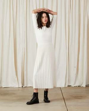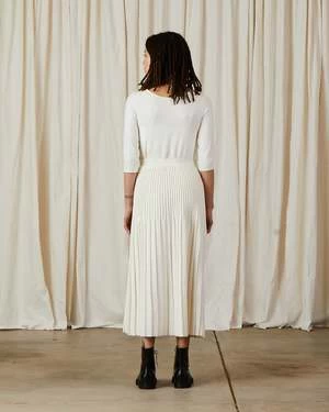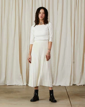 Pleated knit midi skirt with elastic waist in fall weight soft durable yarn.