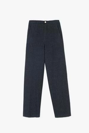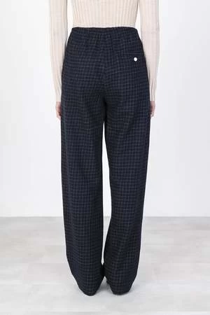 Relaxed, straight leg trousers from Alysi in windowpane check. Making a great suit with the matching Wool Check Blazer, these softly tailored wool pants have a flat, zip front with a contrasting resin button, concealed elastic at back waistband, two side pockets and one back welt pocket.