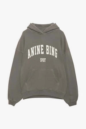 The Harvey Sweatshirt is an oversized hoodie made from a cotton-fleece blend in a dusty olive colourway that’s comfortable and lightweight. It features a screen-printed ANINE BING Sport graphic at the chest in cream collegiate-inspired lettering and subtle grinding along the edges of its hood, sleeve cuffs, and waistband for a vintage look. Includes a functional front kangaroo pocket.