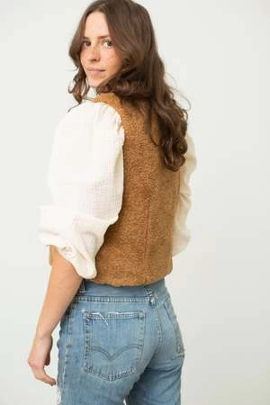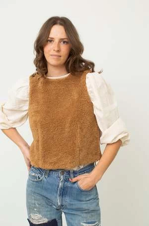 A shrunken modernist waistcoat in a beloved fur-free fur. The Jafer Top is rich in texture, cozy, and clean all at once.