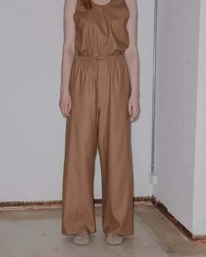 A loose fitting, wide leg pant with elastic waistband made from wild silk.
