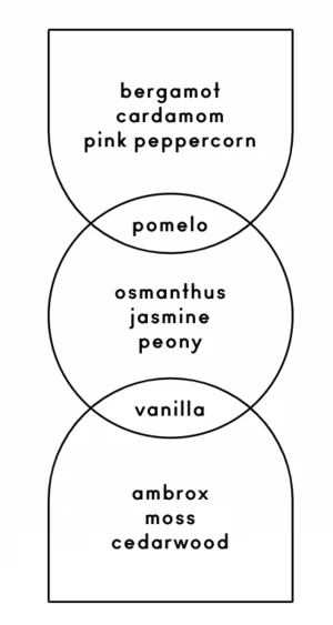 Vegan and clean. 2.2 ounces (65ml). 80% ALC/20% PERFUME. Glass bottle with tinted black perspex topper. Comes in matte pink tray and carton.