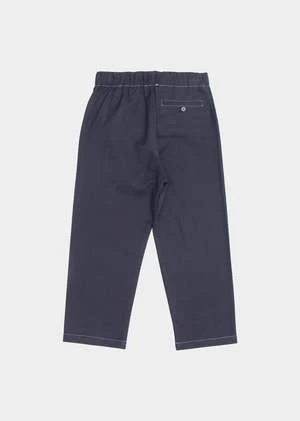 Musing on vintage maritime styles, our Stanley Kids Trouser in Navy are a staple for little winter adventures. Tailored from brushed cotton twill to a buttoned high-rise and tapered-leg silhouette, the design is accented with contrasting coloured stitching and button embellishments for a nautical-inspired style.
