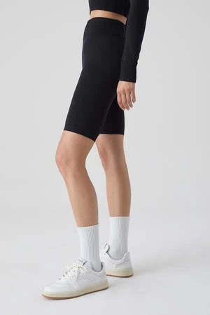 Slim fit made of a technical quality with a high content of recycled polyamide: seamless athletic shorts with wide ribbed cuffs