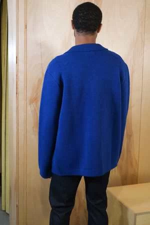 The classic chore coat reimagined from Country of Origin. This knitted chore coat features a classic collar, front patch pockets, and a five-button placket finished with corozo nut buttons. Knitted in 7 gauge with a sturdy half-milano stitch, from supersoft lambswool. Hand-linked by highly skilled technicians.