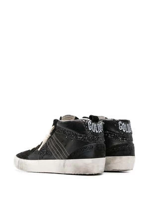 Nodding to the eighties skateboarding culture, these Golden Goose Mid Star sneakers feature mix-media elements of calf suede and are detailed with Golden Goose’s signature star patch in glitter on the side. Distressing on the collar and rubber sole complete the look with a distinctive lived-in feel.