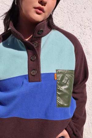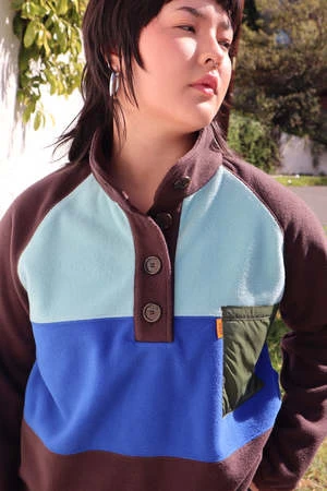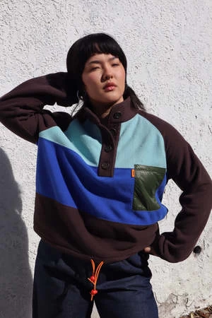 Fabric is 100% deadstock. Body is a soft, cozy fleece and a nylon chest pocket.