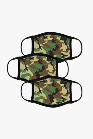 Reusable / washable mask. These are non-medical grade reusable fabric face masks for personal use. Machine washable. Masks are reversible. Camo on one side and solid black on the reverse side.