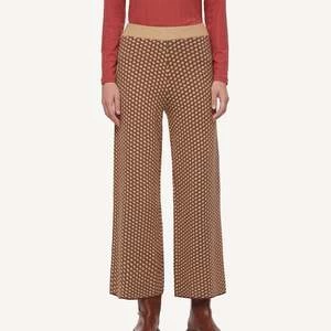 Jacquard wide leg culotte trousers in beige. Elasticated waistband.