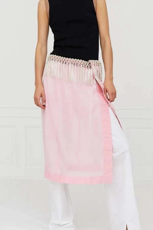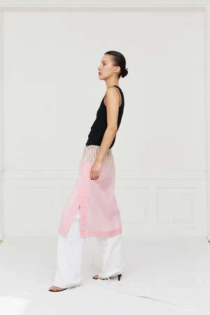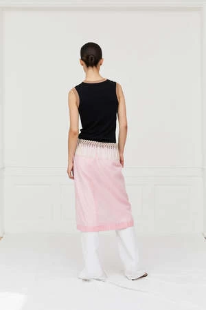 The Daze Skirt is a key piece for the Pre-Spring 2023 collection. The skirt is made from a cotton-silk blend fabric that falls softly on the body. Tassel tape has been designed for a sophisticated look and small delicate details such as a signature Saks Potts monogram charm has been added to complete the look.
