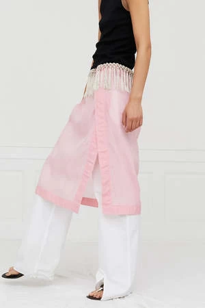The Daze Skirt from Saks Potts is a key piece for the Pre-Spring 2023 collection. The skirt is made from a cotton-silk blend fabric that falls softly on the body. Tassel tape has been designed for a sophisticated look and small delicate details such as a signature Saks Potts monogram charm has been added to complete the look.