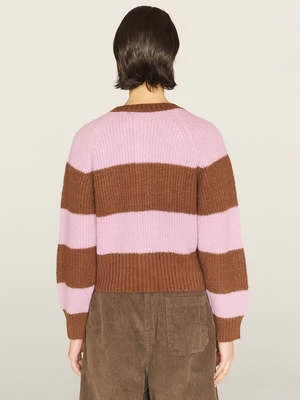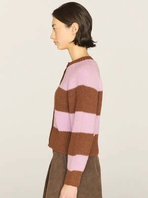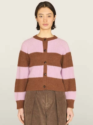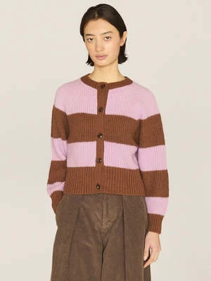 The Foxtail Stripe Cardigan from YMC is a cosy, relaxed fit cropped cardigan. Crafted from Italian mohair wool blend. The cardigan has a rib knit neckband, cuffs and hem. The cardigan is finished with Corozo button fastening.